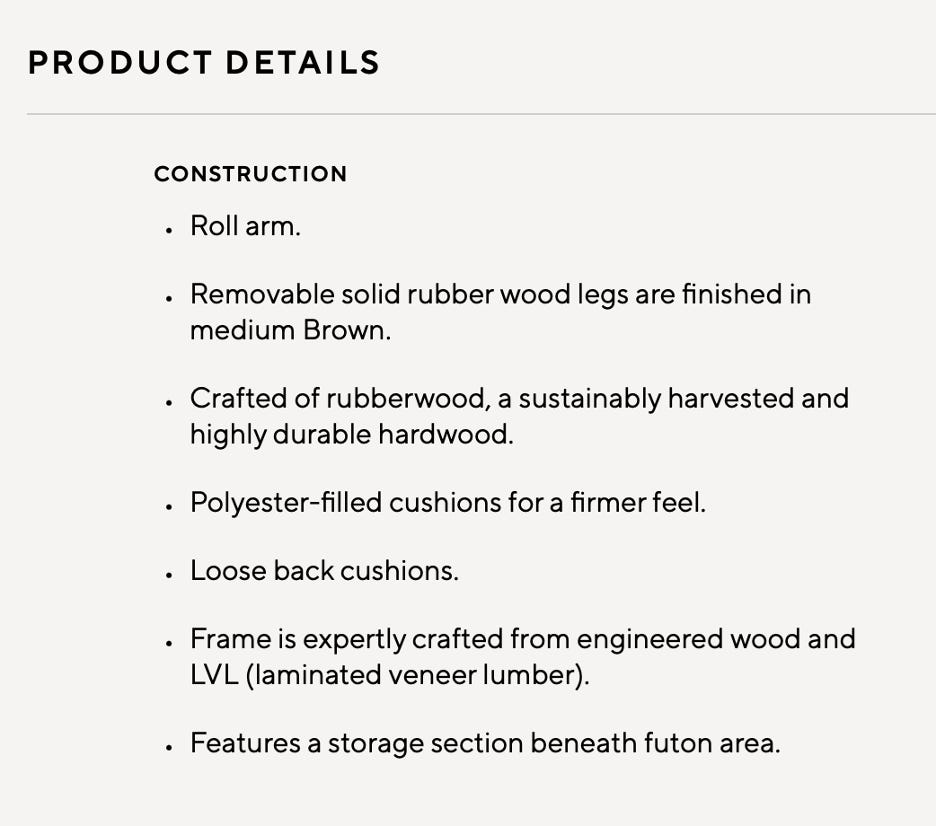 Here’s where the fun begins. This morning, I’m ready to list it on Craigslist and cut my losses. I pull up the picture of the couch, then hop onto the Pottery Barn website to get the product description and start scanning the details…